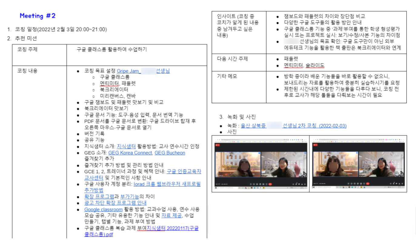 2022년 1월부터 코칭 계획과 매칭을 시작하고, 구글 스프레드시트와 구글 문서를 통해 각 교사들과의 코칭을 기록하며 3개월에 걸친 전체 PD 세션과 개인 코칭을 병행했습니다. 학교의 리더십, 담당 부서들, 그리고 지역 사회는 코칭이 가져온 변화에 긍정적으로 반응했습니다. 처음에는 수동적이었던 교사들도, 학생들의 빠른 적응과 학부모들의 적극적인 참여로 빠른 DX을 시작했습니다.